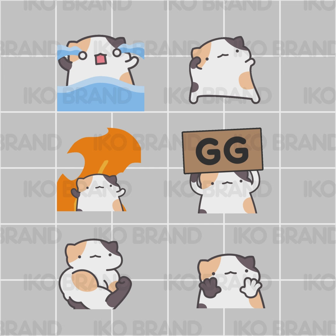 Use the first calico cat emotes package for your stream or alerts on YouTube, Twitch, or Discord!
