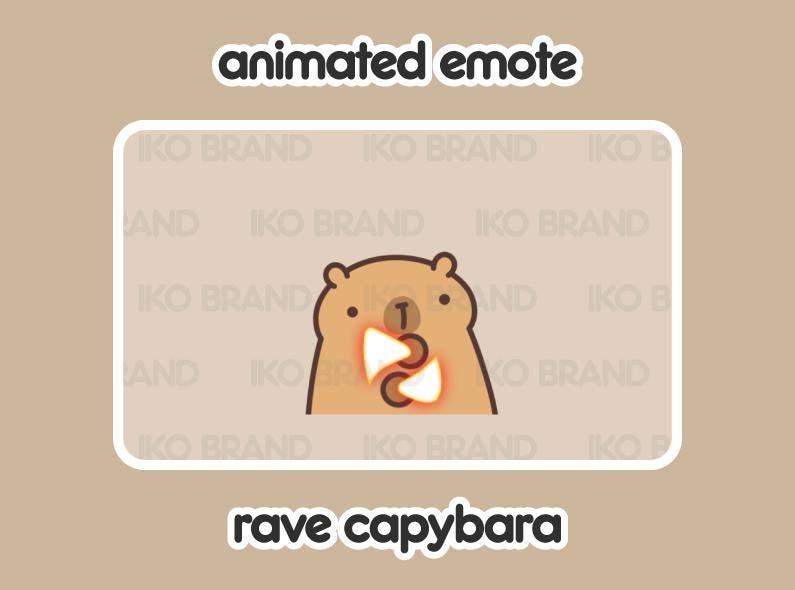 Use the Capybara Rave GIF Emote for your stream or alerts on YouTube, Twitch, or Discord!