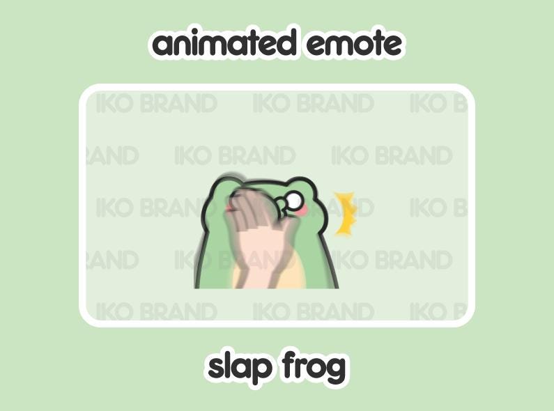 Use the Frog Slap GIF Emote for your stream or alerts on YouTube, Twitch, or Discord!