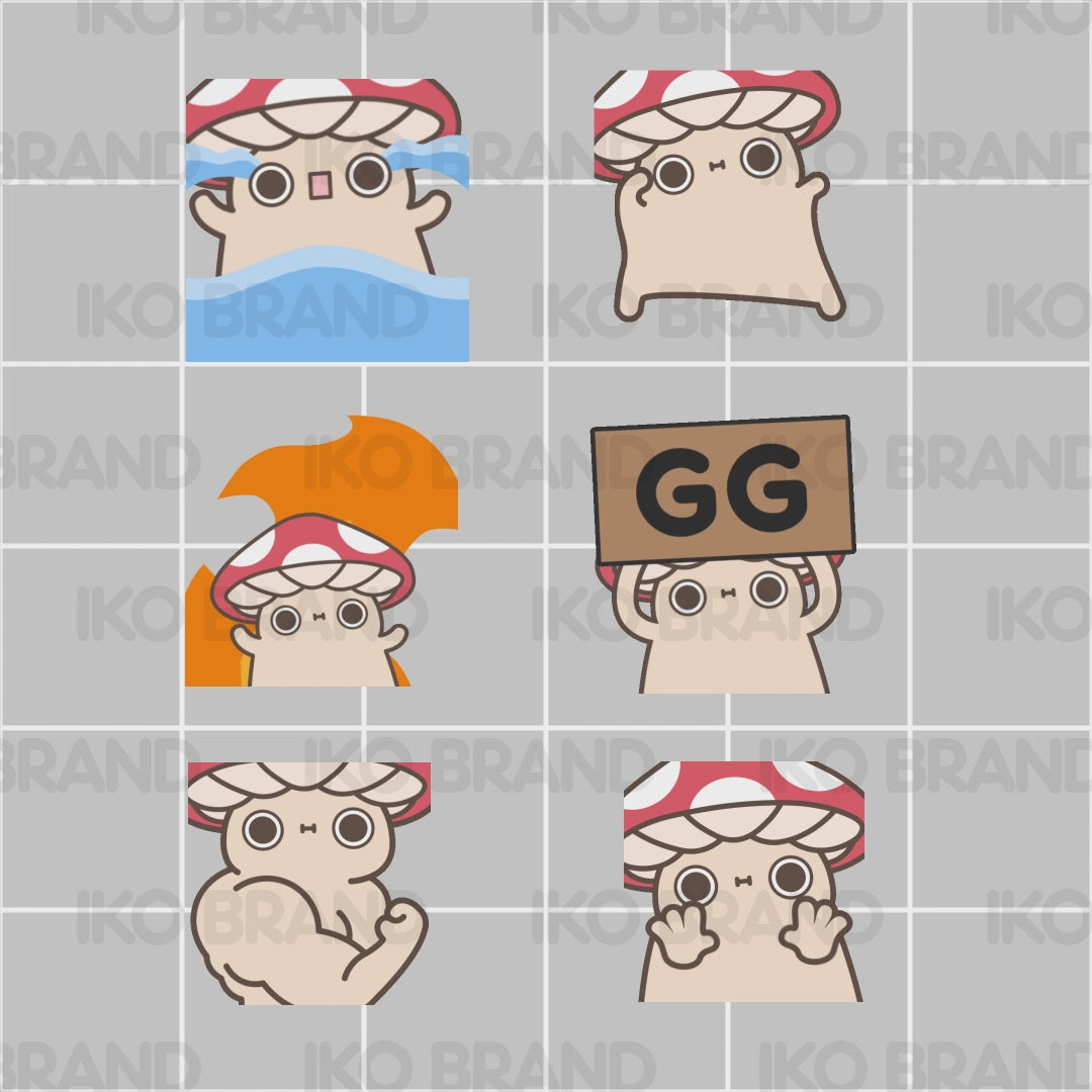 Use the first mushroom emotes package for your stream or alerts on YouTube, Twitch, or Discord!